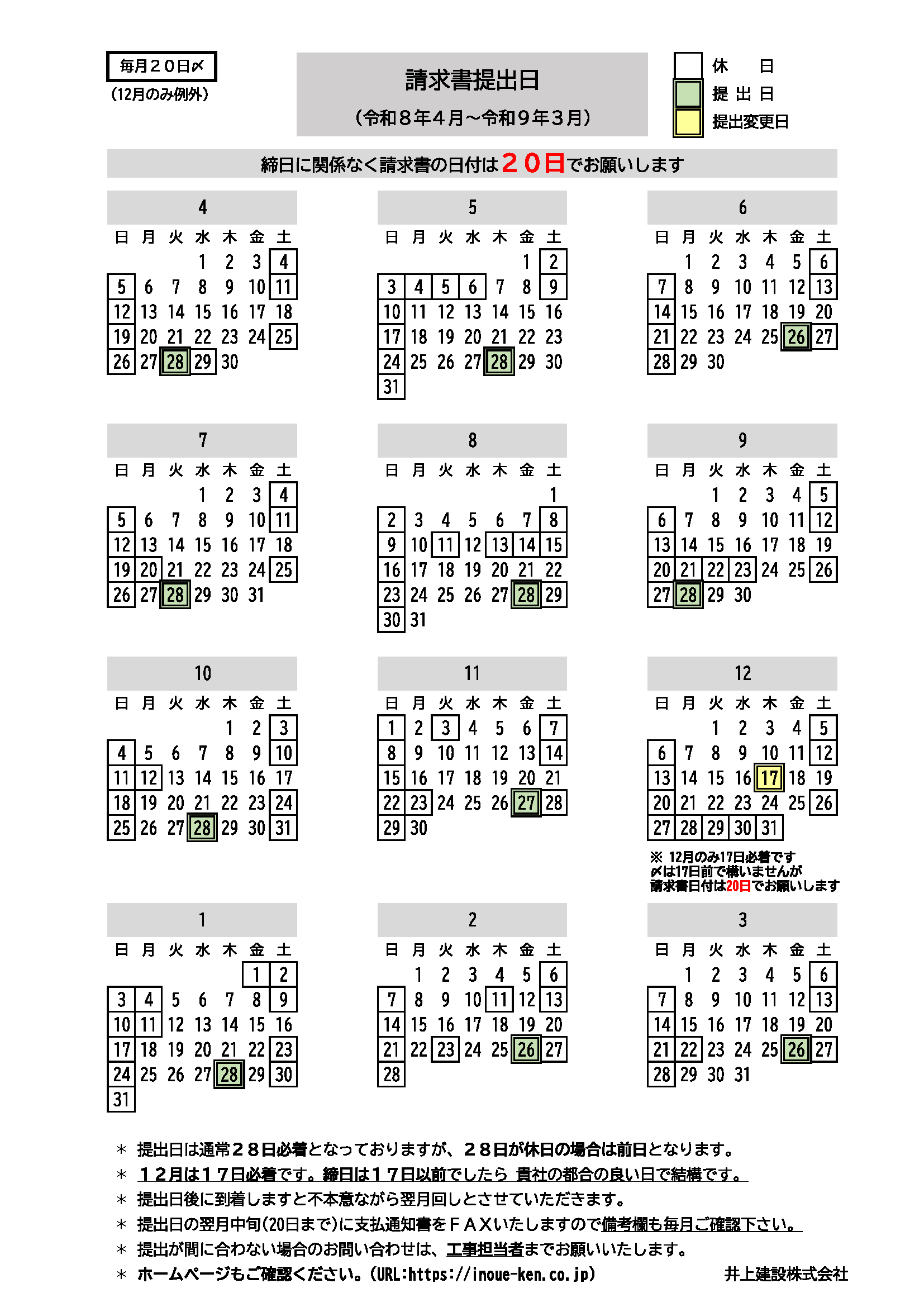 20日締め28日必着(休日の場合前日)